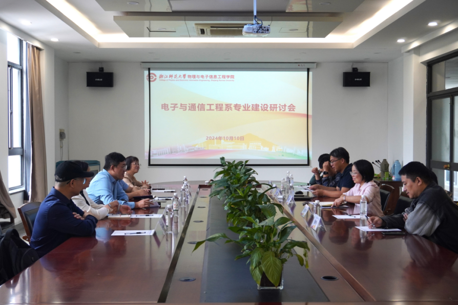 在下午的第二阶段会议上,研讨会重点讨论了电子与通信工程系的专业建设。浙江师范大学物电学院副院长蒋敏兰介绍了电子信息工程专业的建设历程。随后,电子与通信工程系主任沈建国详细讲解了在课堂教学改革、创新创业教育、实践基地建设等方面的举措,这些经验为南宁师大电子信息专业的建设提供了重要启示。