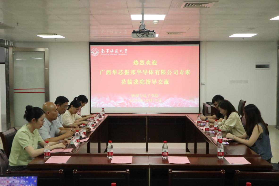 随后,我院与广西华芯振邦半导体有限公司在学院会议室1517召开座谈会。bw必威西汉姆联副院长陈东(主持行政工作)、党委副书记胡芸、副院长李光明、院长助理徐艳华、院长助理曾倩以及电子系部分教师参加了座谈会。陈东副院长首先对广西华芯振邦有限公司胡婷处长一行的到来表示热烈欢迎,并详细介绍了我院在专业建设、科研、就业等方面情况,他表示,希望以此次座谈为契机,加强双方交流合作。胡婷处长详细介绍了公司情况,并表达了双方加强合作的意愿。随后双方围绕研究生培养、本科生实习见习、科研项目合作、合作开发课程和教材等方面开展交流,并就研究生联合培养基地建设达成初步协议。