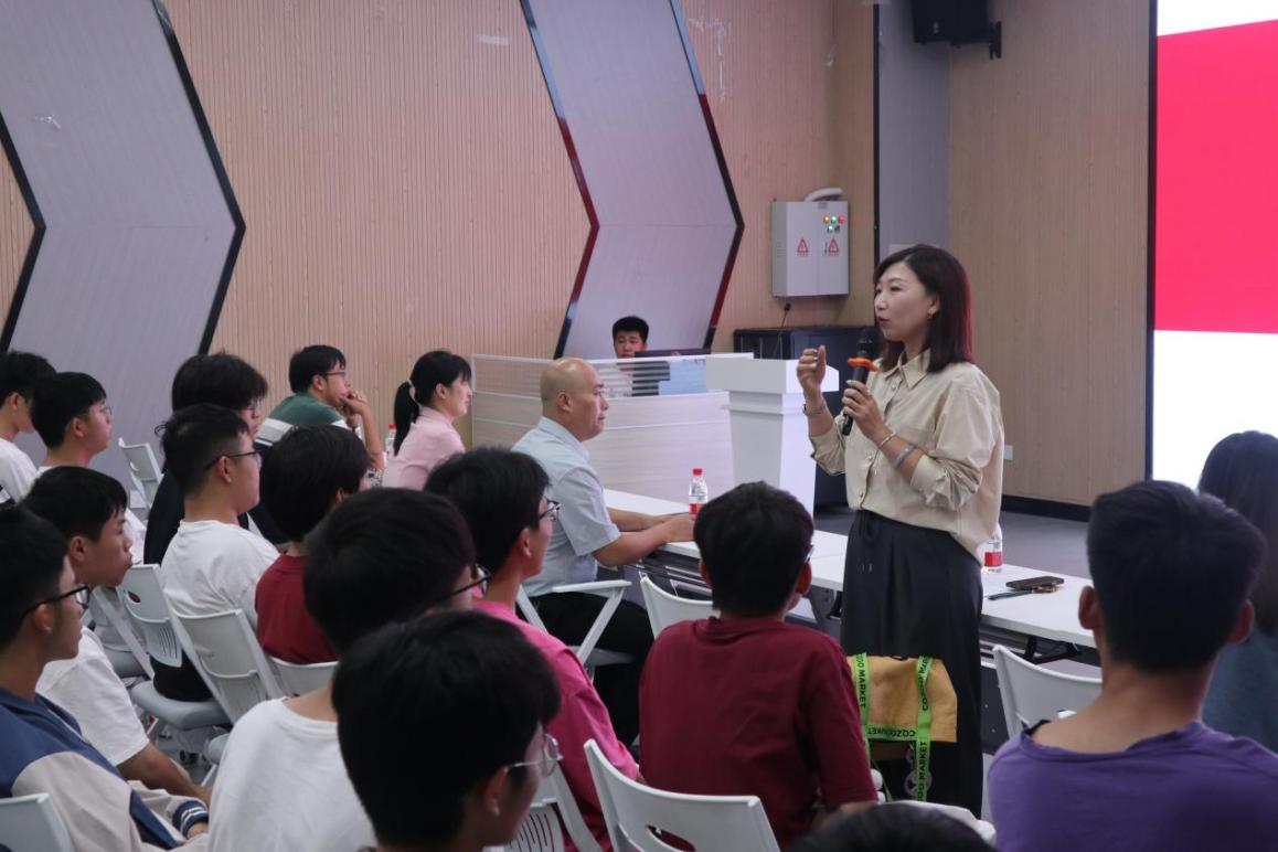 广西华芯振邦有限公司的研发工程师陈冠宇介绍了半导体产业链上中下游行业企业、半导体行业热点研究方向以及半导体行业人才发展方向,使同学们对半导体行业有了更加清晰的了解。胡婷处长介绍了同学们关注度极高的半导体企业人才招募状况。她首先讲解了人才招募标准以及人才综合能力考察重点,而后对在校大学生们提出提升综合能力的建议,呼吁大家学好专业知识、积极参与比赛,在校期间抓住提升自己的机会。同学们认真聆听并踊跃互动,胡处长耐心与同学们交流,并鼓励大家积极争取尝试。通过本次讲座,同学们开拓了视野,明确了今后努力的方向。