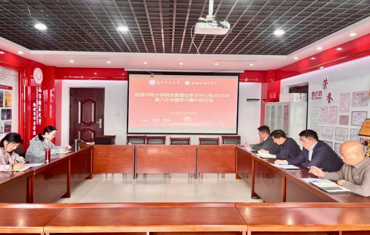 12月30日下午,物理与电子学院党委理论学习中心组在武鸣校区召开2025年八次专题学习集中研讨会。学院党委理论学习中心组成员参加会议,会议由学院党委副书记(主持党委工作)农保雄主持。