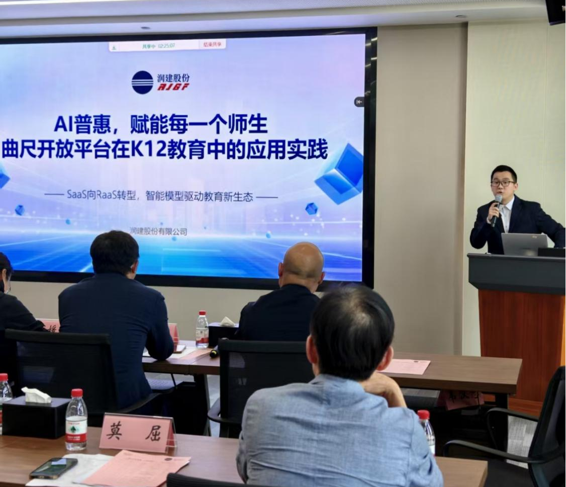 四位专家在论坛做了主题报告。其中,润建公司杜双阳和陈昌海分别以“AI普惠,赋能每一个师生——曲尺开放平台在K12教育中的应用与实践”和“AI通识,育见未来——构建面向全体中小学生的AI核心课程系统与实践”为主题做报告。他们介绍AI发展的趋势及功能,并紧扣教育,从教师教案的生成、学生考试评估体系的构建、学生个体情况的差异分析,以及如何建立学习大模型,怎样用好开放性,进行了讲解。